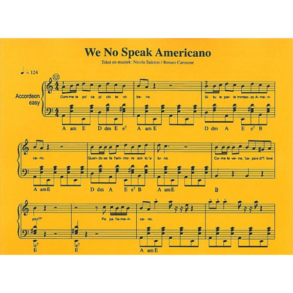 Sheetmusic of We No Speak Americano - Yolanda Be Cool vs DCup
